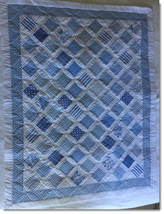 Patchwork cot quilt/play mat - Light Blue Diagonal