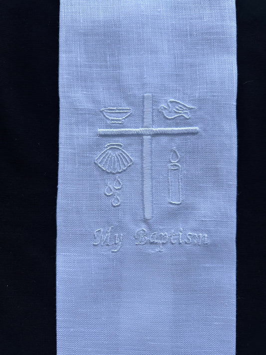 Baptism Stole with Liturgical fabric Gold Cross Trim