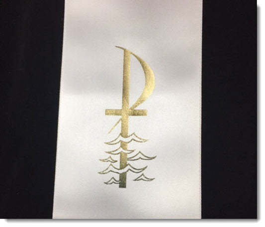 Baptism Stole - Silver or Gold Metallic Print Cross and Water