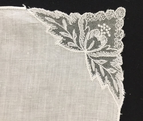 Antique Vintage hanky bonnet with Fine Net Lace Corner