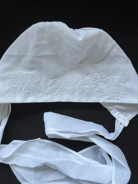 Hanky Bonnet with Embroidered Cross