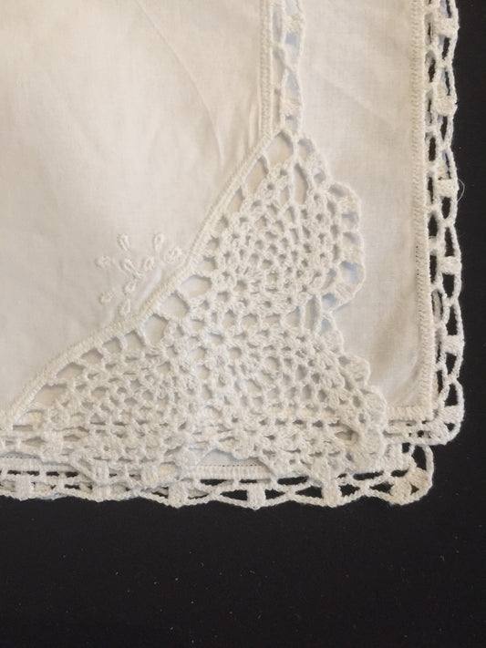 Hankie bonnet with crochet edge