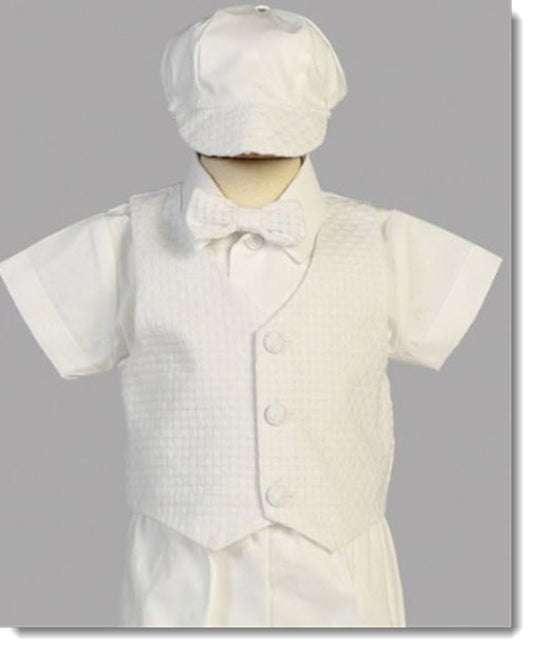 4415 Boys Ivory silk Christening Romper & Cape Set