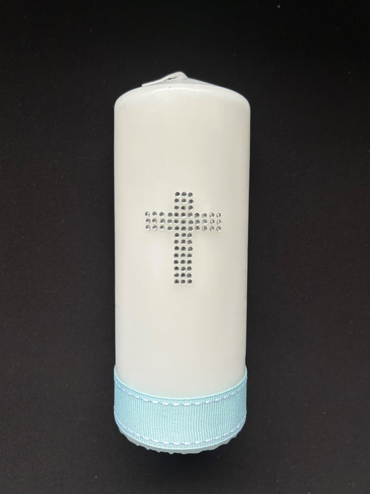 Baptism Candle with Coloured ribbon & Cross