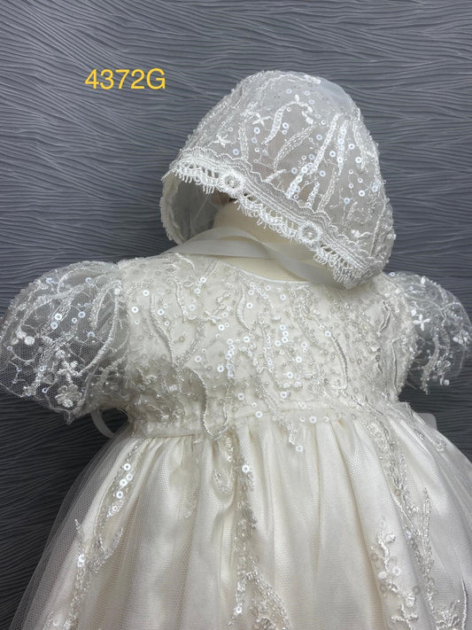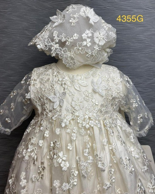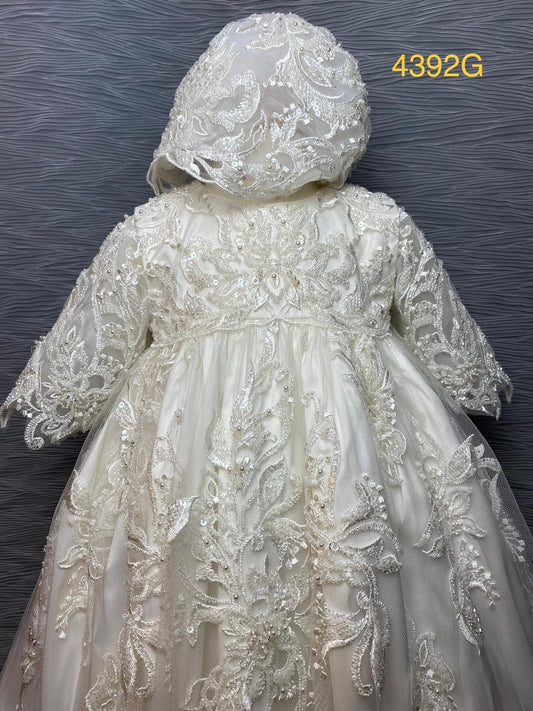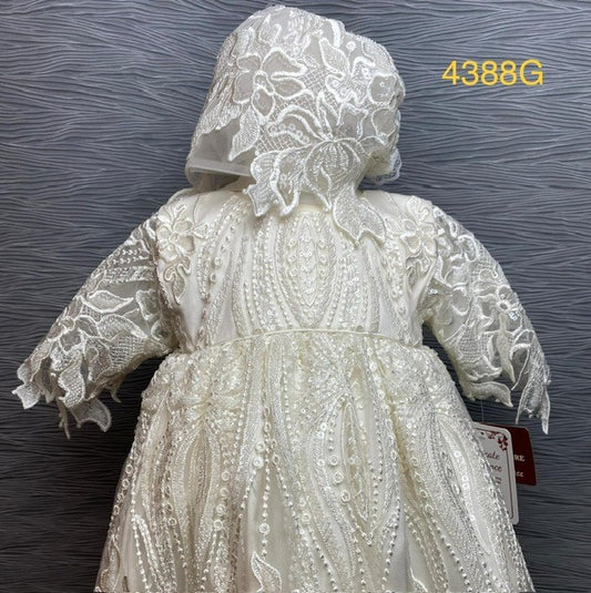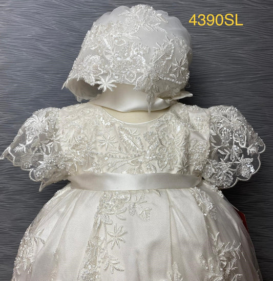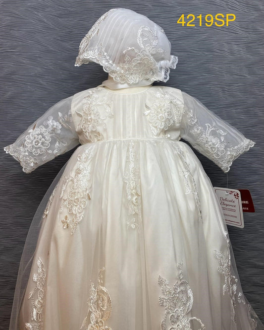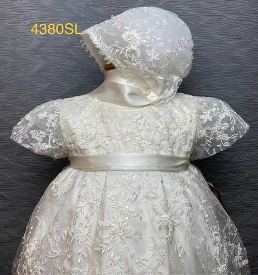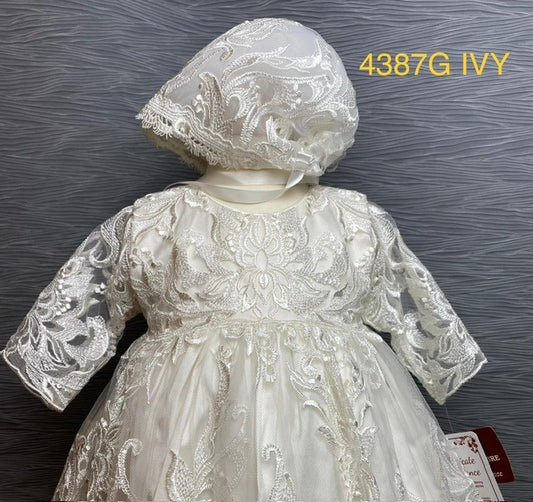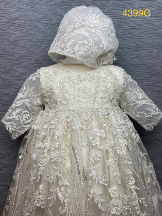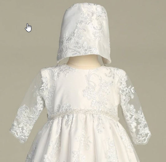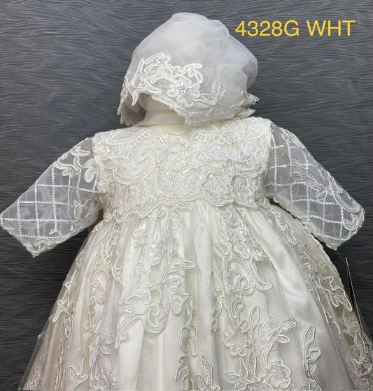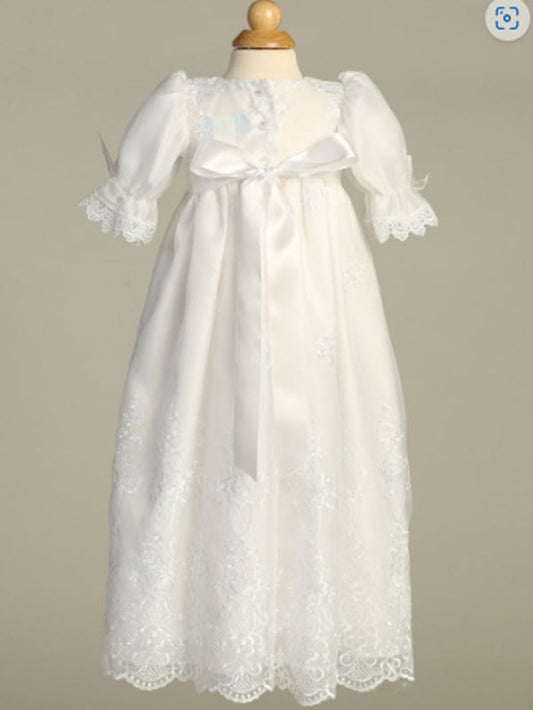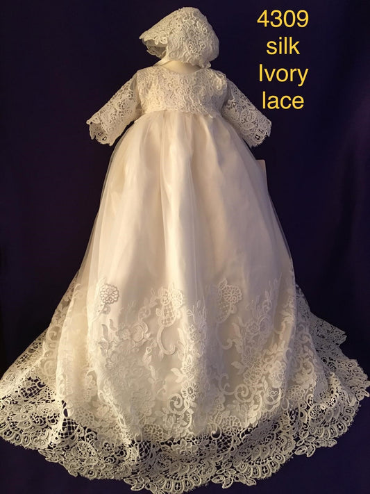 4309 G White satin or Ivory Silk & lace Christening Gown