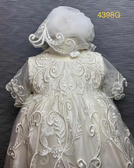 534-A Luxurious Princess Ballgown Baby Dress with Floral Trim
