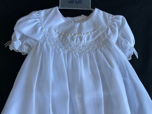 06802 Elegant Christening Gown with Smocking and Embroidery