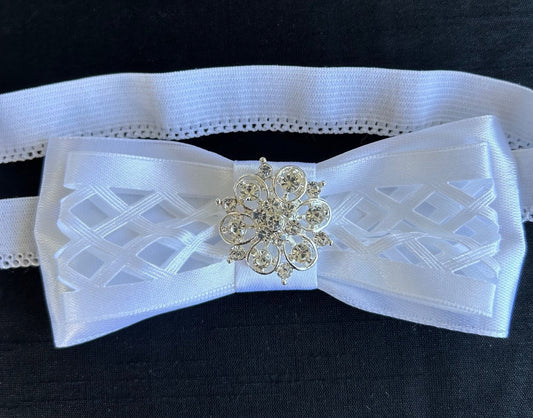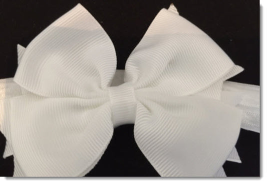 Beautiful Grosgrain Bow - Elastic Headband - white