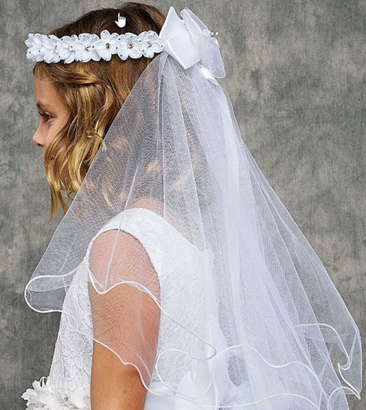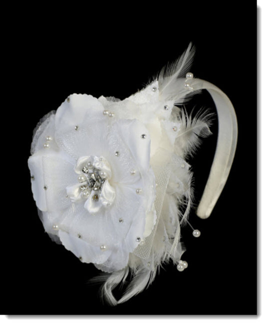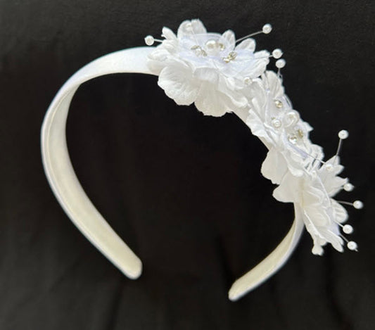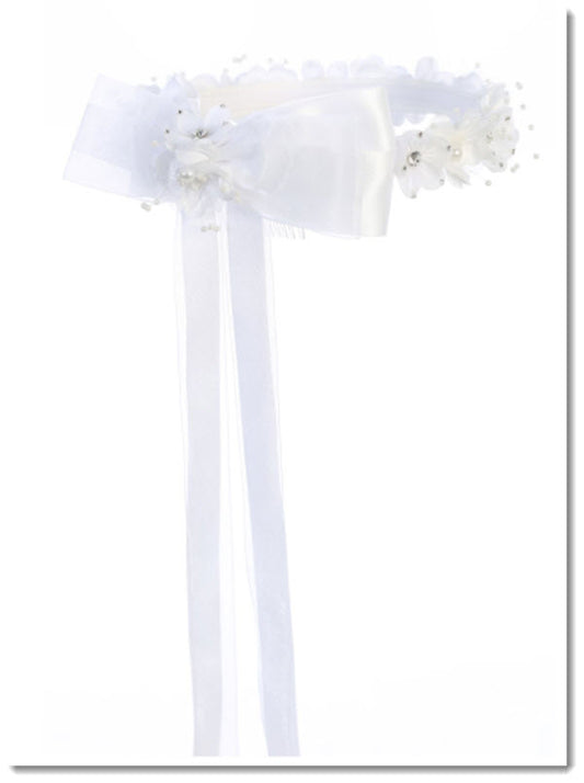 HB 022 Satin Headband with Organza Bow & Satin Flower