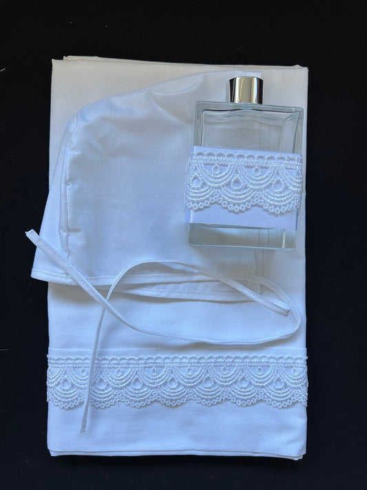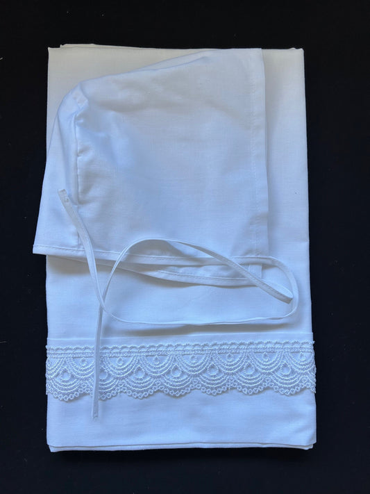 Oil Set with Bonnet and Cot Size Sheet - with or without Lace