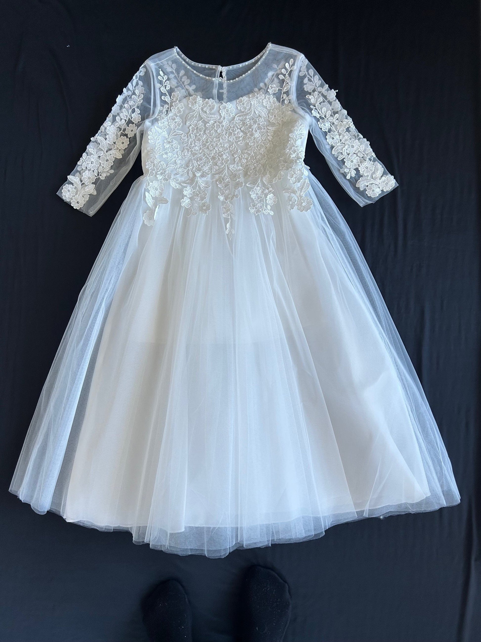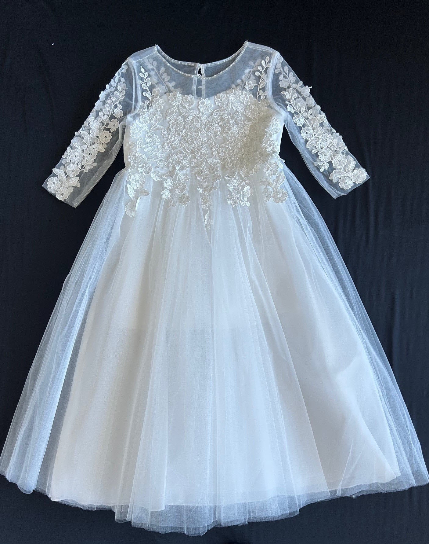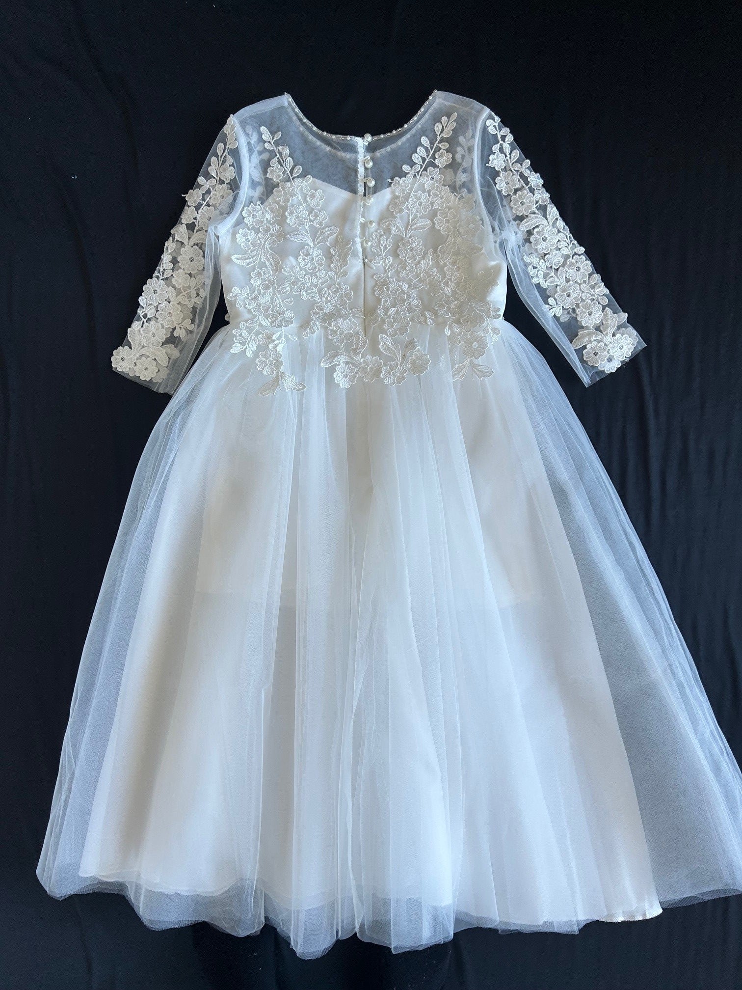 415 Ivory Long Sleeve First Communion or Flower Girl dress with Lace Applique