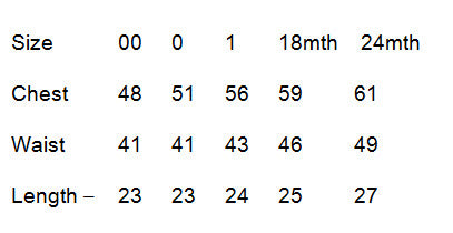 Size: 6, 9, 12, 18 & 24 mth (00, 0, 1, 18m & 24m)
