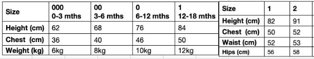 Size: 000, 00, 0, 1, 2