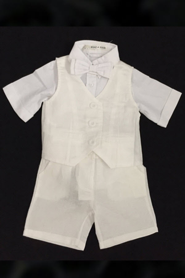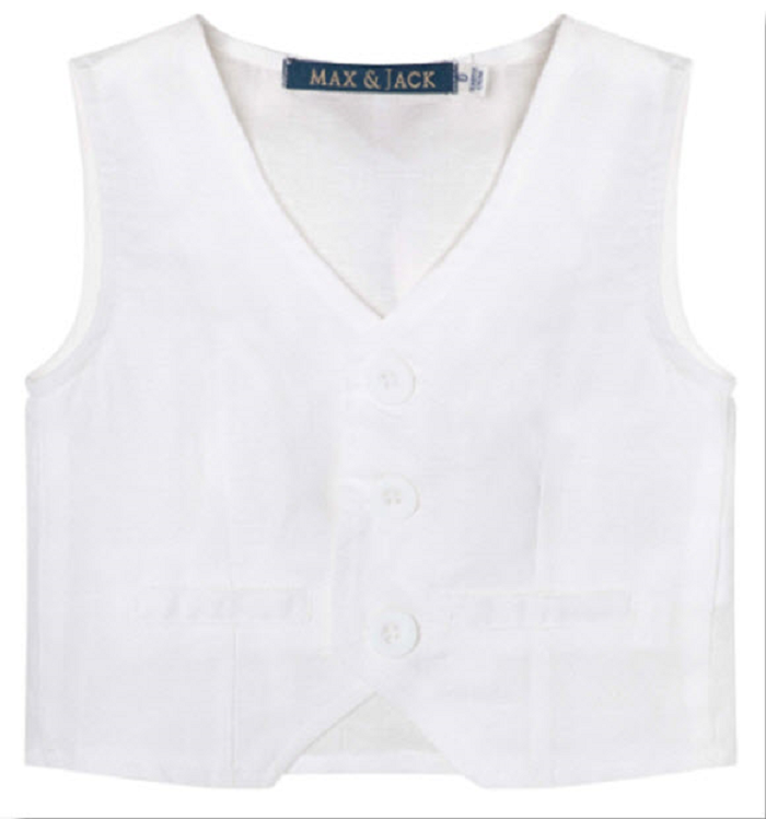 - A dapper vest for your pint-size prince! The Toby Linen Vest, Wedding white/soft cream, features a tailored with front button detailing. 100% Linen