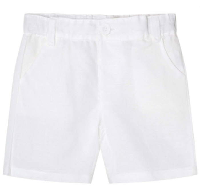 - The Toby shorts, wedding white/soft cream, features an adjustable waist, slant front pockets, a false fly, buttons and belt loop. 100% Linen